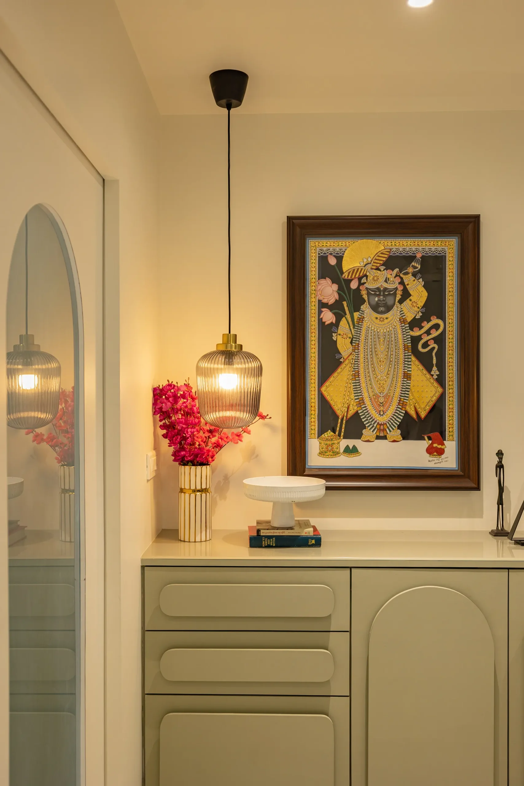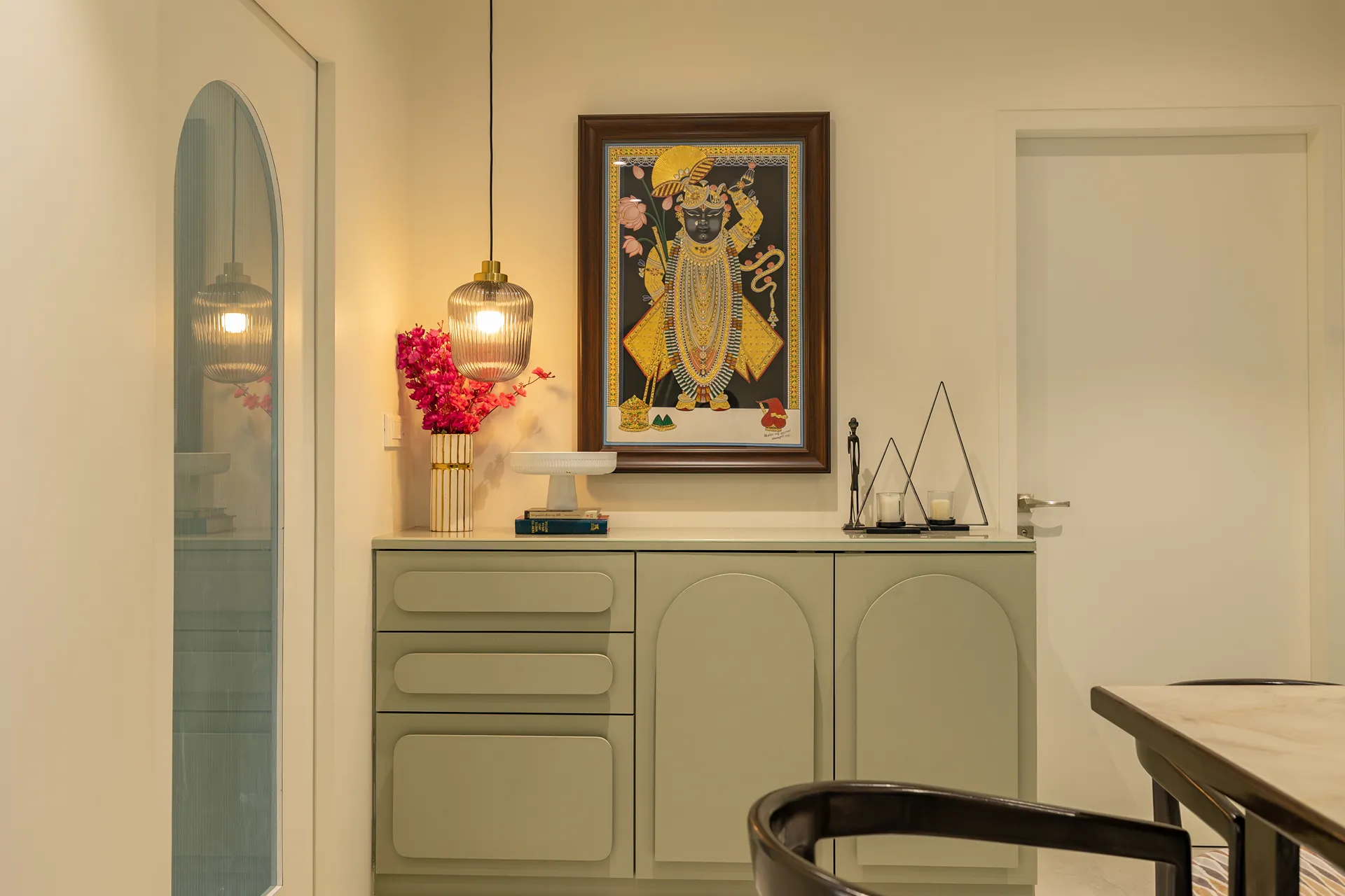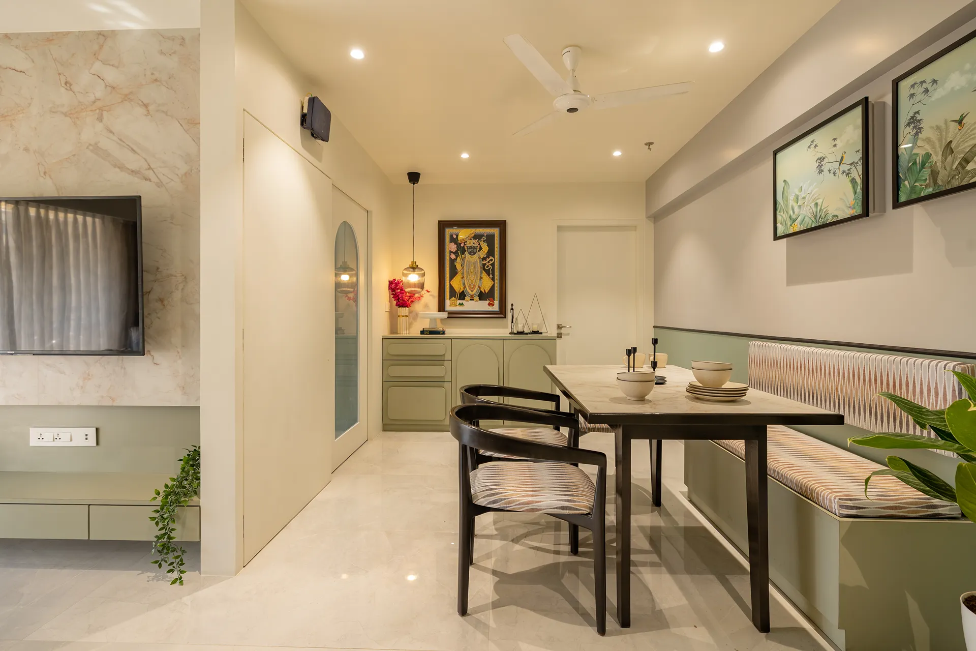This 2BHK Mumbai apartment was reimagined to meet the storage and lifestyle needs of a family of five while maintaining an open, welcoming, and visually soft environment. Arches, nature-inspired tones, and carefully layered textures create a sense of calm and connection with nature, turning a compact space into a serene oasis.