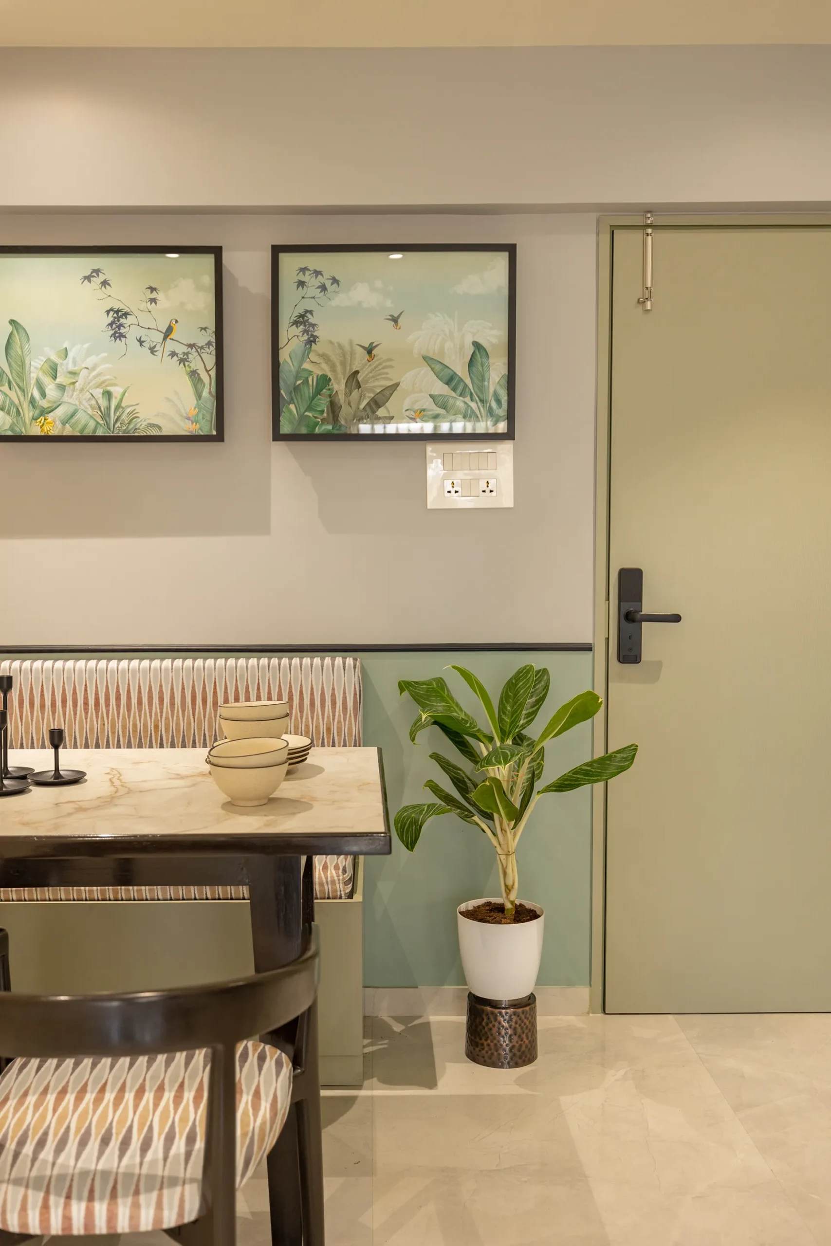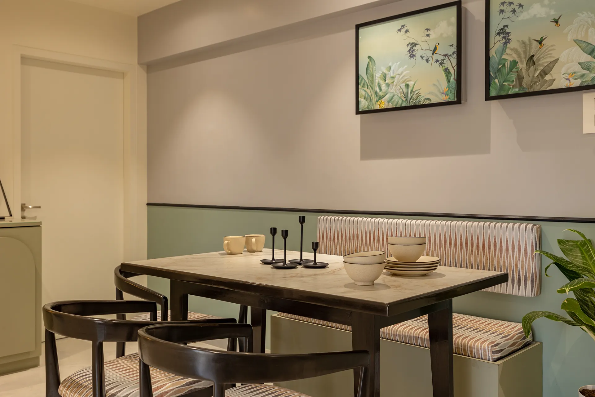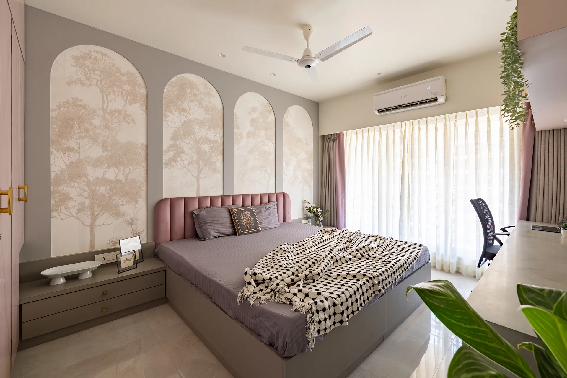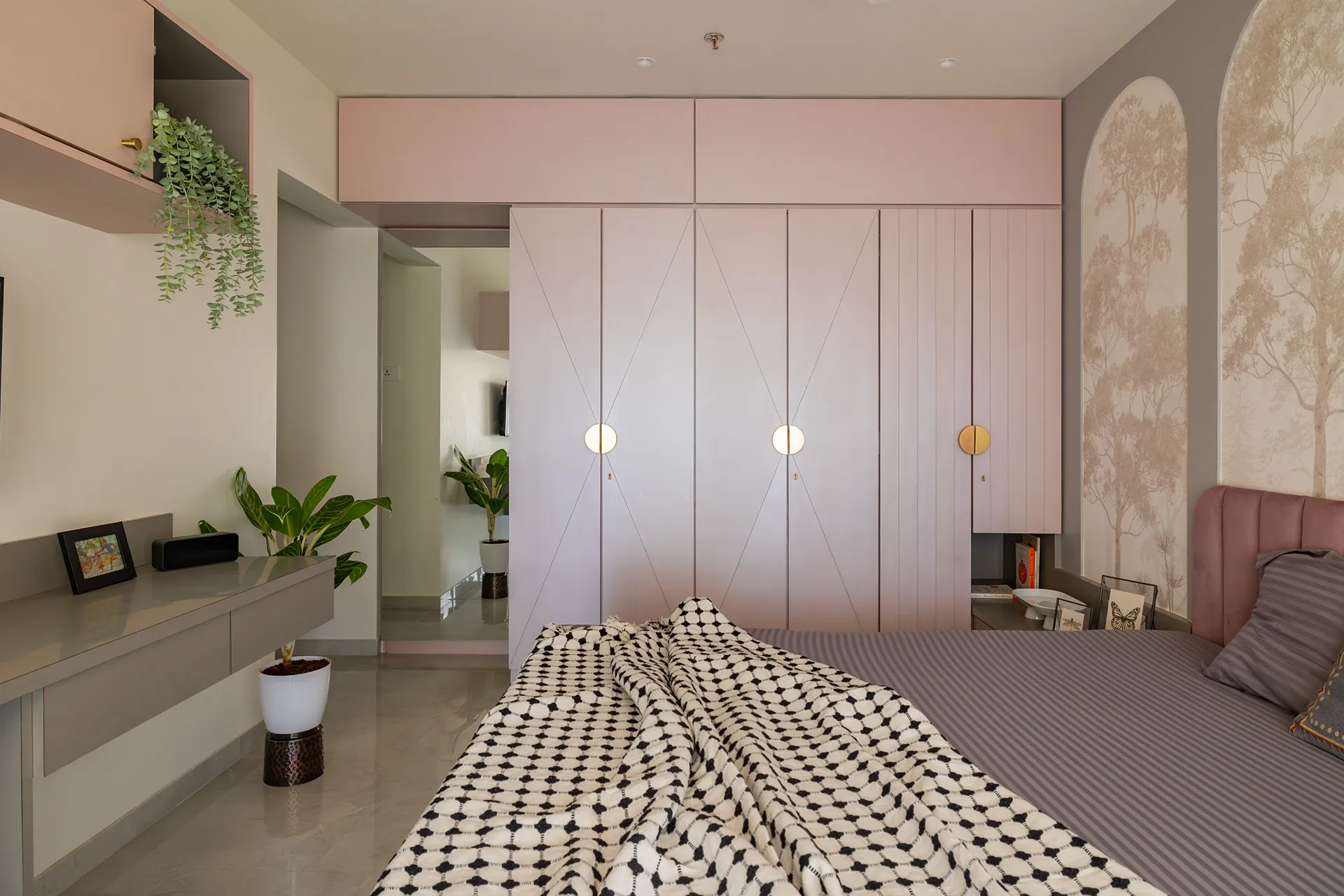 This 2BHK Mumbai apartment was reimagined to meet the storage and lifestyle needs of a family of five while maintaining an open, welcoming, and visually soft environment. Arches, nature-inspired tones, and carefully layered textures create a sense of calm and connection with nature, turning a compact space into a serene oasis.
