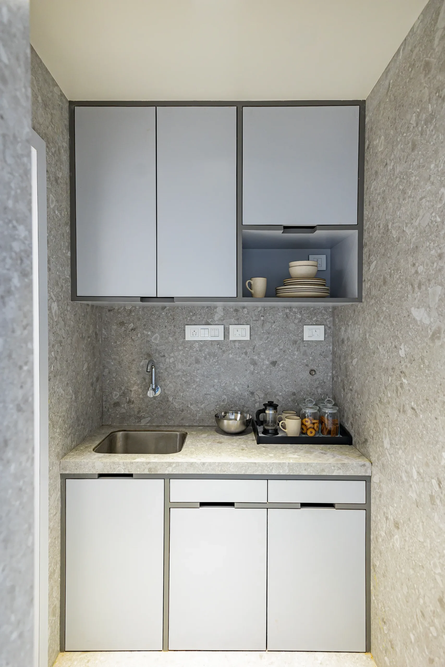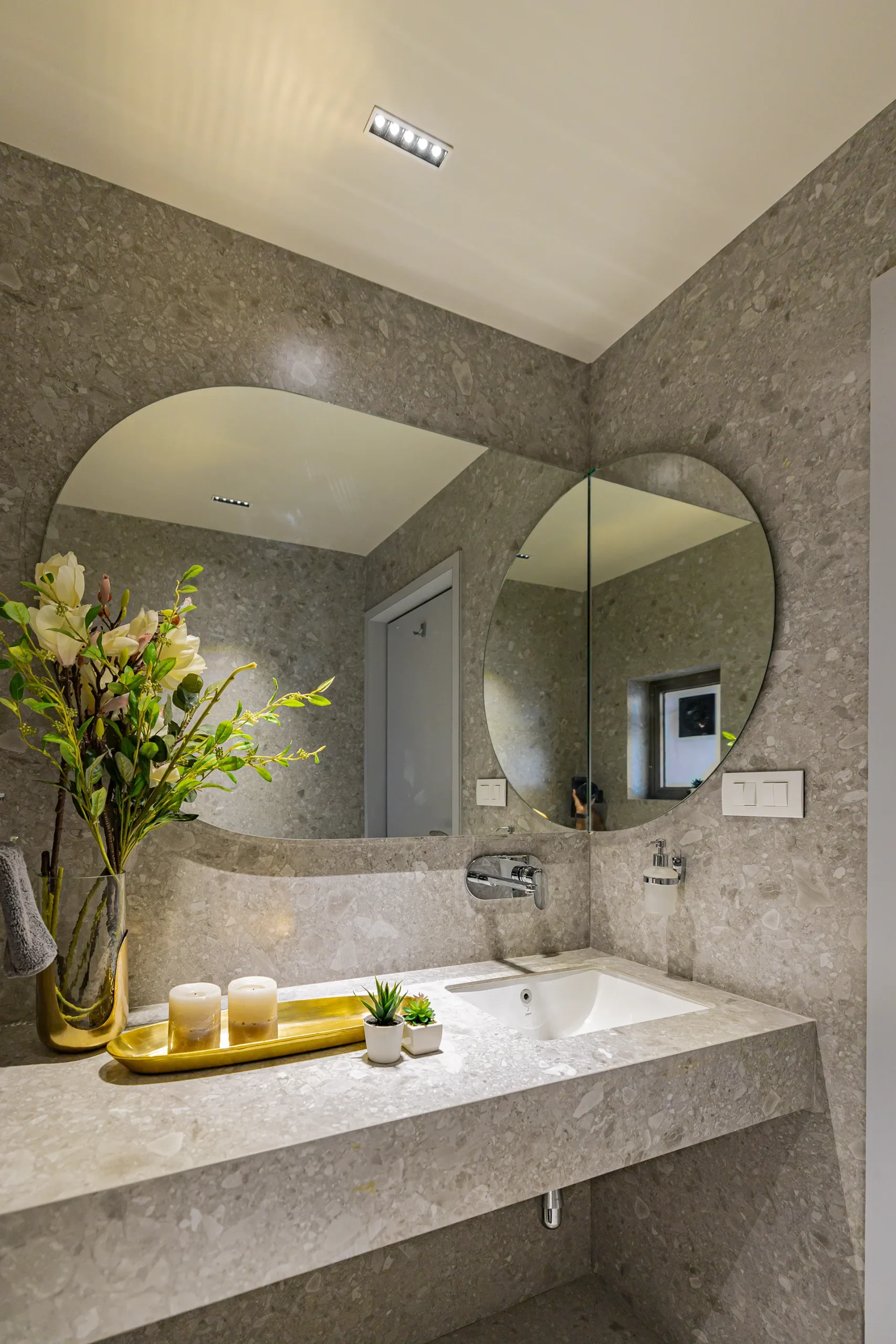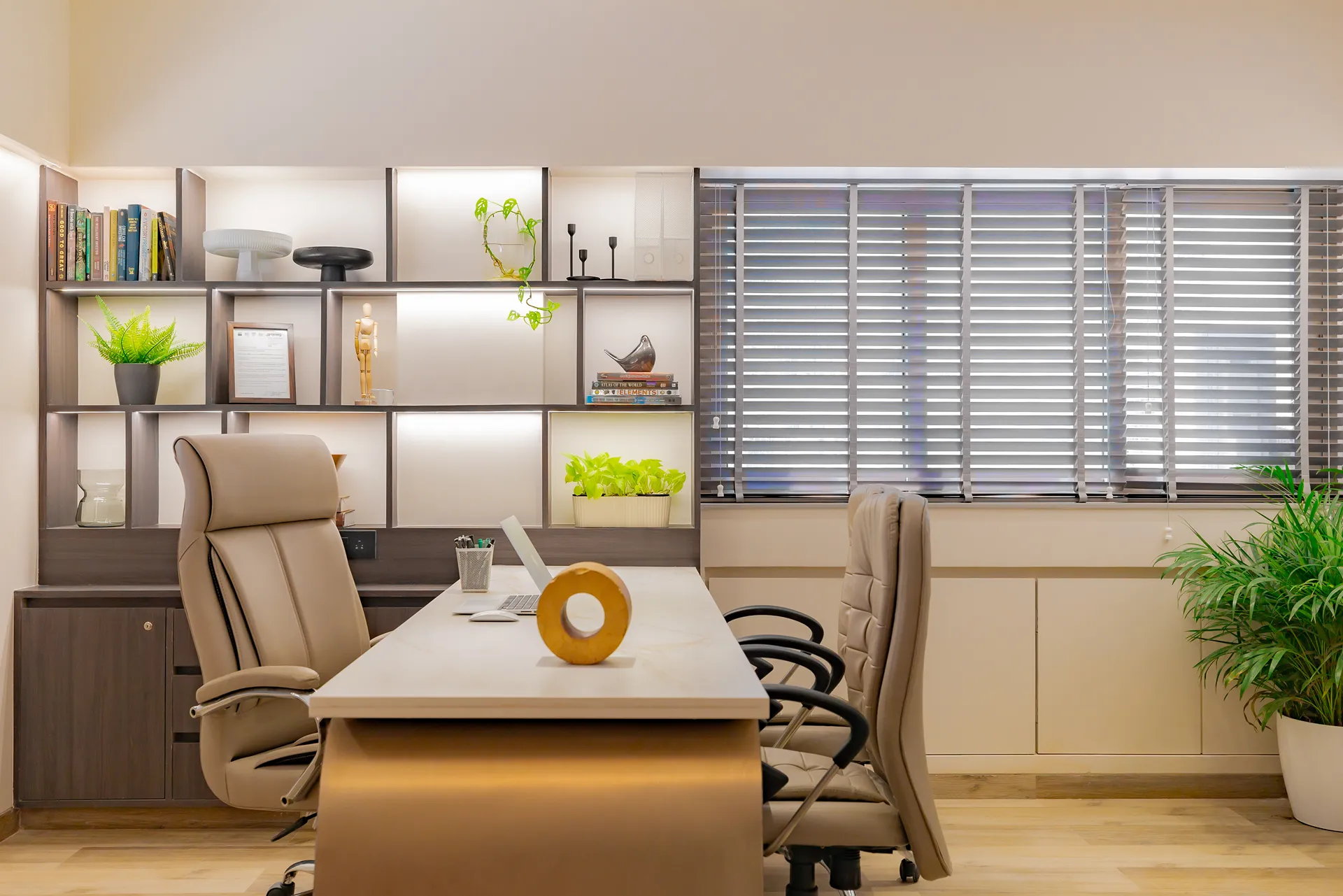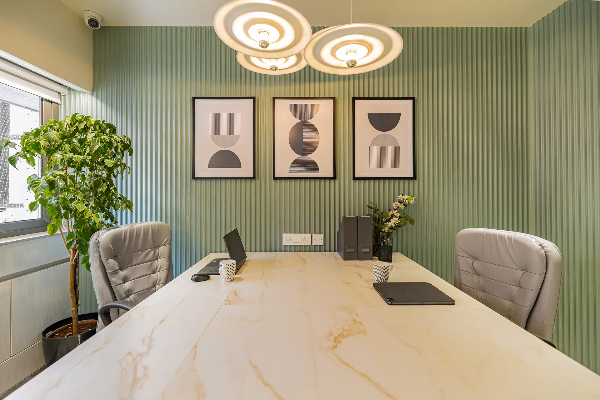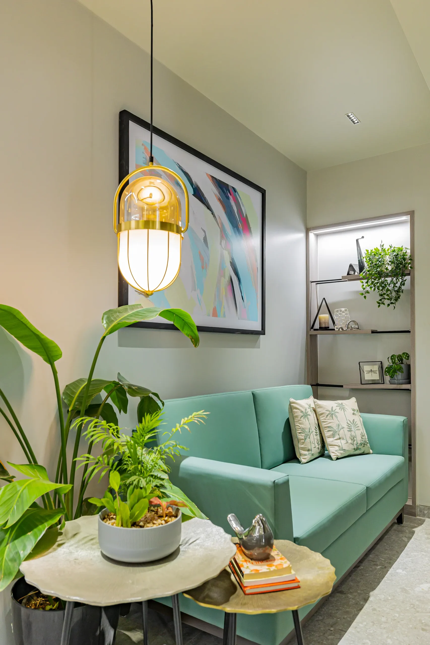 - Sensory Accents: In a space defined by a monochromatic base, we used natural plants and curated art as intentional “eye-breaks.” These organic elements provide a soothing contrast to the disciplined architectural lines.